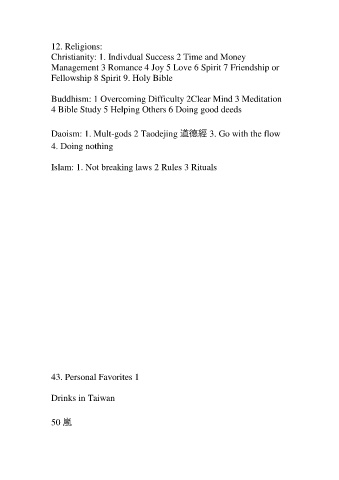 Daoism: 1. Mult-gods 2 Taodejing 道德經 3. Go with the flow