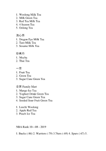 1. Bucks (-86) 2. Warriors (-79) 3.76ers (-69) 4. Spurs (-67) 5.