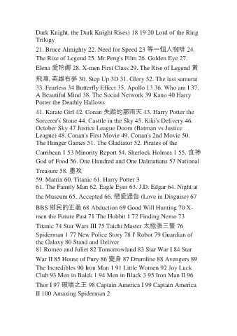 Dark Knight, the Dark Knight Rises) 18 19 20 Lord of the Ring