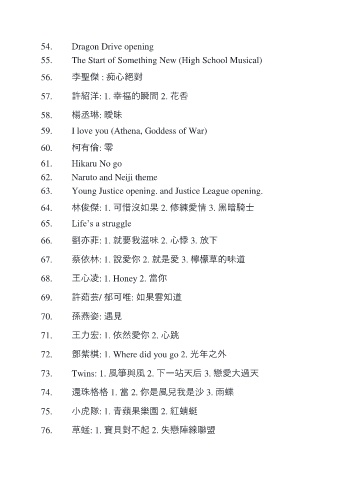 66. 劉亦菲: 1. 就要我滋味 2. 心悸 3. 放下
