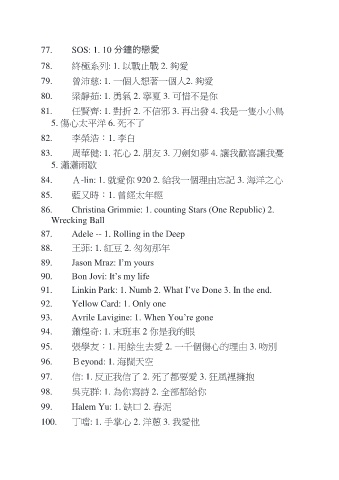 80. 梁靜茹: 1. 勇氣 2. 寧夏 3. 可惜不是你