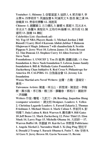 Warren Buffet 18. 李嘉誠 19. Kai-fu Lee 李開復 Politicians: