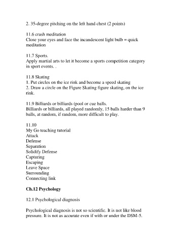 2. 35-degree pitching on the left hand chest (2 points)