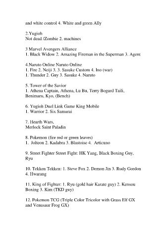 11. King of Fighter: 1. Ryu (gold hair Karate guy) 2. Kensou