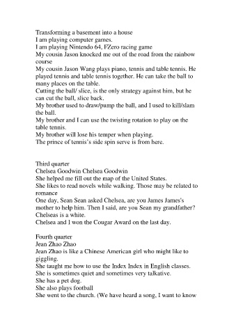 My cousin Jason Wang plays piano, tennis and table tennis. He