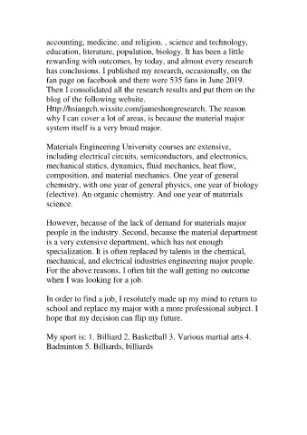 My sport is: 1. Billiard 2. Basketball 3. Various martial arts 4.