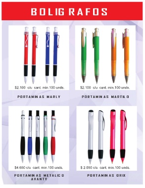 $4.650 c/u  cant. min.100 unds.                         $ 2.050 c/u  cant. min.100 unds.