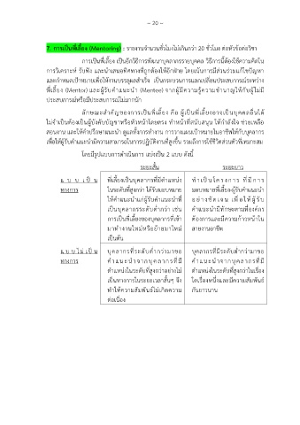 พี่เลี้ยง (Mentor) และผู้รับค าแนะน า (Mentee) จากผู้มีความรู้ความช านาญให้กับผู้ไม่มี