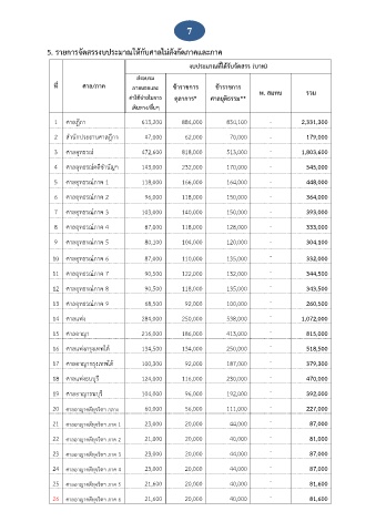 5. รายการจัดสรรงบประมาณให้กับศาลไม่สังกัดภาคและภาค
