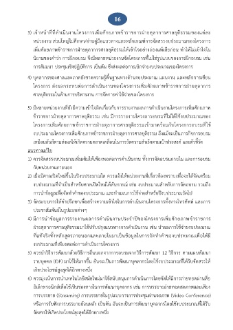 6) ควรมุ่งเน้นการน าเทคโนโลยีสมัยใหม่มาใช้สนับสนุนการด าเนินการโดยจัดให้มีการถ่ายทอดผ่านสื่อ