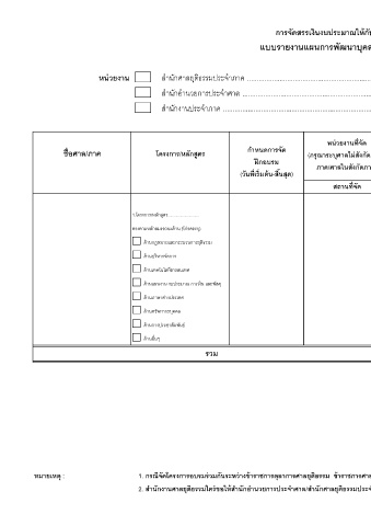 หมายเหตุ : 1. กรณีจัดโครงการอบรมร่วมกันระหว่างข้าราชการตุลาการศาลยุติธรรม ข้าราชการศาลยุติธรรม และหรือผู้พิพากษาสมทบ การจัดท าแผนการใช้จ่ายเงินให้ใช้แบบฟอร์มเดียวกัน