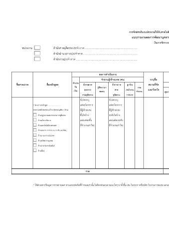 * ให้ส่งเฉพาะข้อมูลการรายงานผลฯ ตามแบบฟอร์มที่ก าหนดเท่านั้น ไม่ต้องส่งเอกสารแนบใดๆ มาทั้งสิ้น เช่น ใบประกาศนียบัตร ใบผ่านการอบรม เอกสารประกอบการอบรม ฯลฯ ผู้จัดท ารายงาน …..……..............……………………….