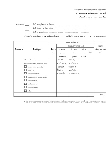 * ให้ส่งเฉพาะข้อมูลการรายงานผลฯ ตามแบบฟอร์มที่ก าหนดเท่านั้น ไม่ต้องส่งเอกสารแนบใดๆ มาทั้งสิ้น เช่น ใบประกาศนียบัตร ใบผ่านการอบรม เอกสารประกอบการอบรม ฯลฯ ผู้รำยงำน ……………..............……………