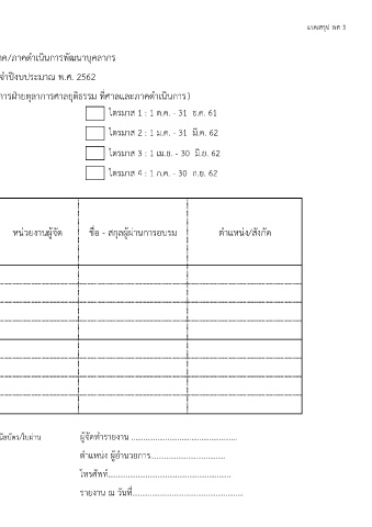 แบบรายงานรายชื่อผู้ผ่านการอบรม ประจ าปีงบประมาณ พ.ศ. 2562