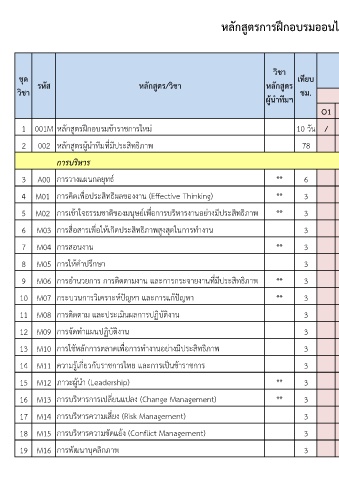 16 M13 การบริหารการเปลี่ยนแปลง (Change Management) ** 3 / / / / / / / / / /