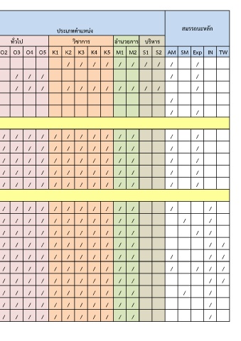 ชุด เทียบ ประเภทตําแหนง สมรรถนะหลัก