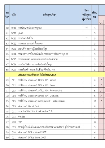 60 PC19 การพัฒนาทรัพยากรบุคคล ** 3 / / / / /
