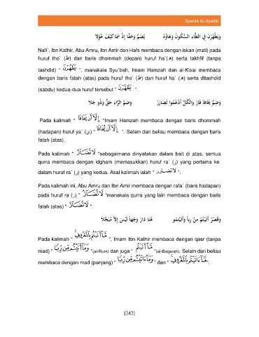 pada huruf ra (ر) “ “manakala qurra yang lain membaca dengan baris
