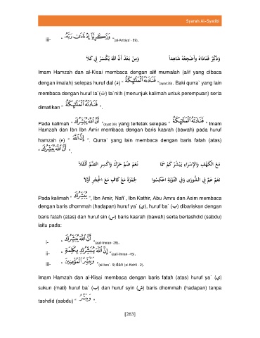 Imam Hamzah dan al-Kisai membaca dengan baris fatah (atas) huruf ya` (ي)