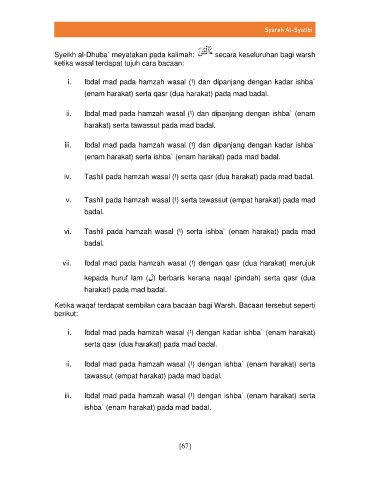 Syeikh al-Dhuba` meyatakan pada kalimah: secara keseluruhan bagi warsh