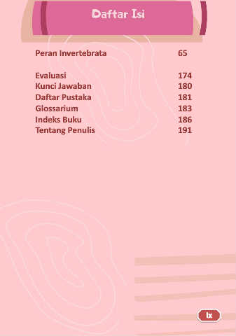 Peran Invertebrata 65 Evaluasi 174 Kunci Jawaban 180 Daftar Pustaka 181 Glossarium 183 Indeks Buku 186 Tentang Penulis 191 ix
