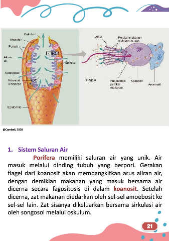 masuk melalui dinding tubuh yang berpori. Gerakan
