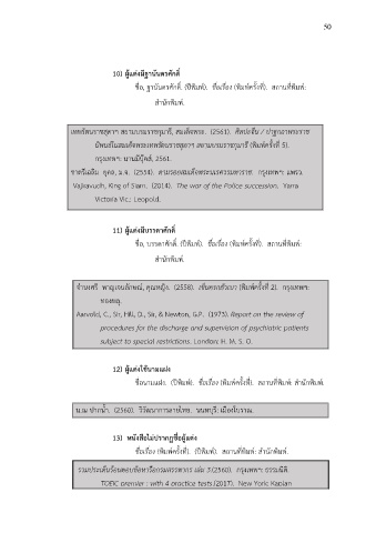 ชื่อเรื่อง (พิมพ์ครั้งที่). (ปีพิมพ์). สถานที่พิมพ์: ส านักพิมพ์.