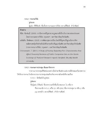 ผู้แต่ง. (ปีที่พิมพ์). ชื่อเรื่อง(รายงานผลการวิจัย). สถานที่พิมพ์ : ส านักพิมพ์.