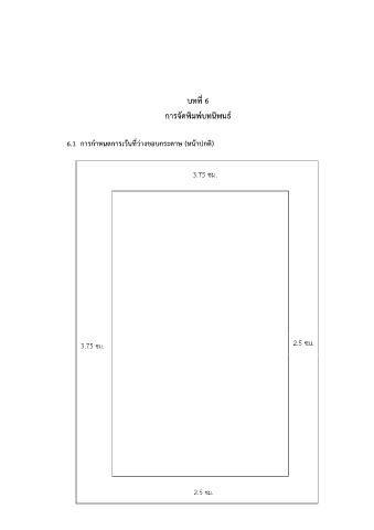 บทที่ 6 การจัดพิมพ์บทนิพนธ์ 6.1 การก าหนดการเว้นที่ว่างขอบกระดาษ (หน้าปกติ) 3.75 ซม. 3.75 ซม. 2.5 ซม. 2.5 ซม.