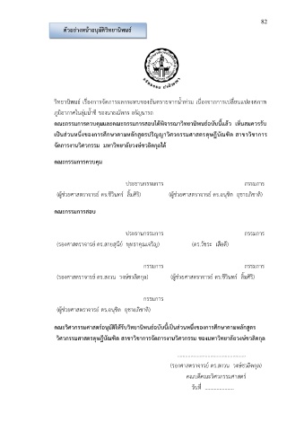 ตัวอย่างหน้าอนุมัติวิทยานิพนธ์