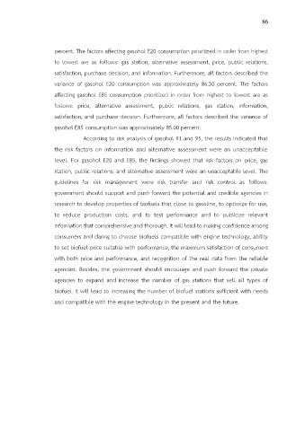 variance of gasohol E20 consumption was approximately 86.30 percent. The factors