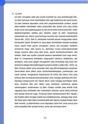 Lip balm merupakan salah satu produk kosmetik rias yang dioleskanpada bibir.