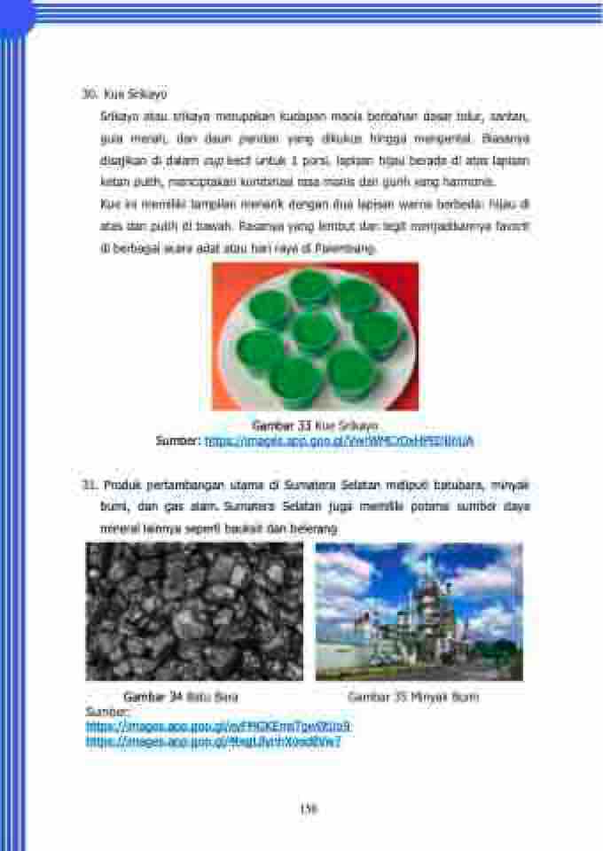 31. Produk pertambangan utama di Sumatera Selatan meliputi batubara, minyak