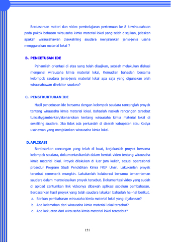 tentang wirausaha kimia material lokal. Bahaslah naskah rancangan tersebut