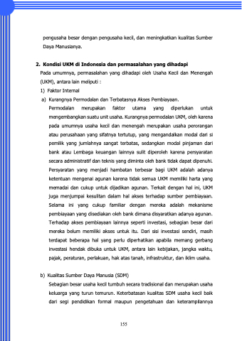 keluarga yang turun temurun. Keterbatasan kualitas SDM usaha kecil baik