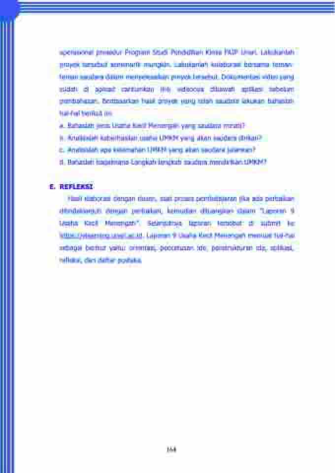 https://elearning.unsri.ac.id. Laporan 9 Usaha Kecil Menengah memuat hal-hal