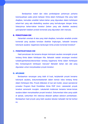 kewirausahaan pada pokok bahasan Kimia dalam Kehidupan Kita yang telah