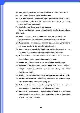 5) Dedication : Wirausahawan sangat berdedikasi atas bisnisnya.