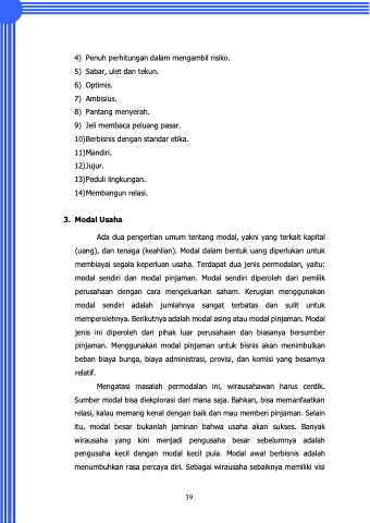 menumbuhkan rasa percaya diri. Sebagai wirausaha sebaiknya memiliki visi