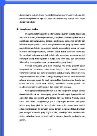 pemilik dan semua karyawan. Dengan keterbukaan, semua ikut berpikir dan