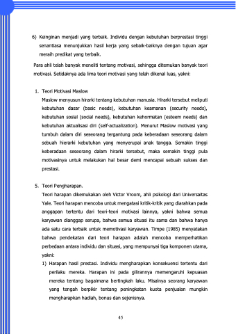 motivasi. Setidaknya ada lima teori motivasi yang telah dikenal luas, yakni: