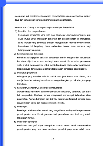 Menurut Hadi (2011), sumber peluang inovasi dapat berasal dari: