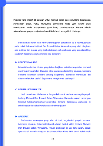 Dan Inovasi Dalam Wirausaha. Proyek dilakukan di luar jam kuliah, sesuai