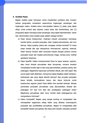 Bagian analisis pasar bertujuan untuk meyakinkan pembaca atau investor