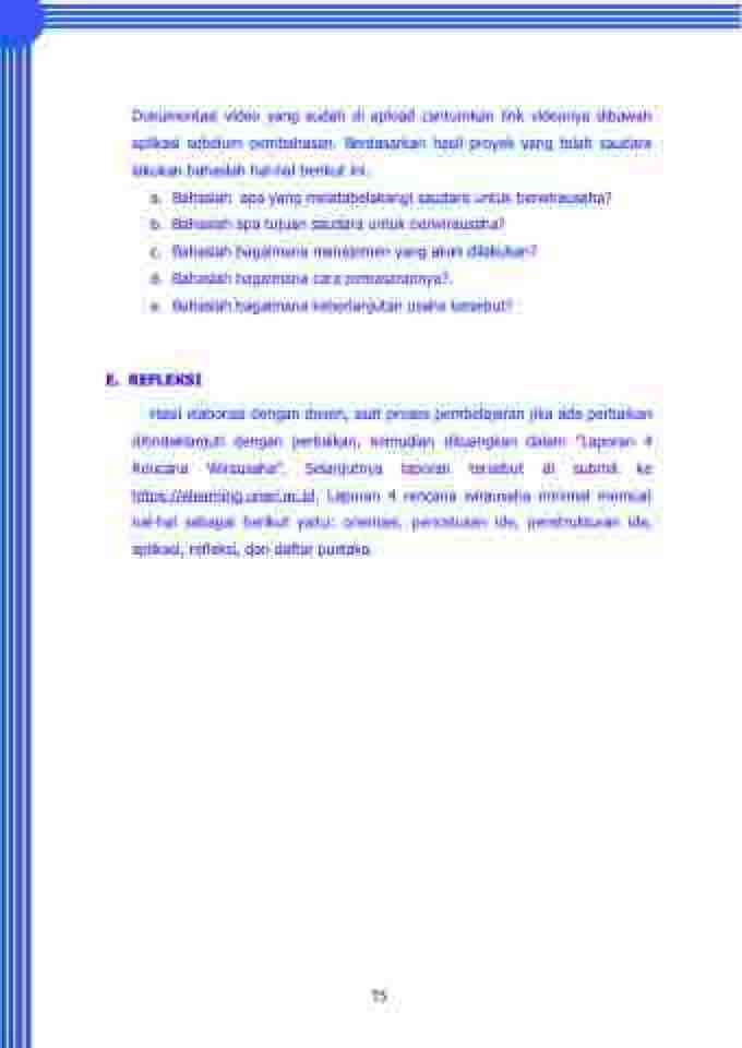 https://elearning.unsri.ac.id. Laporan 4 rencana wirausaha minimal memuat