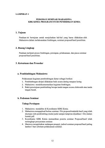 Panduan ini bertujuan untuk menjelaskan hal-hal yang harus dilakukan oleh Mahasiswa dalam melaksanakan bimbingan, seminar proposal/hasil penelitian.