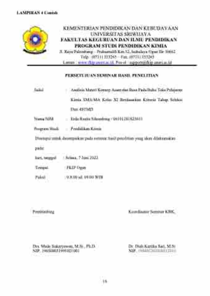 Laman : www.fkip.unsri.ac.id, Pos-el : support@fkip.unsri.ac.id