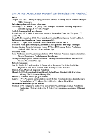 DAFTAR PUSTAKA (Gunakan Microsoft Word template style: Heading 1)