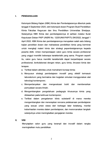 April 2022. KBK Kimia dan pembelajarannya merupakan salah satu bidang kajian penelitian dosen dan mahasiswa pendidikan kimia yang berminat untuk mengkaji materi kimia dan strategi pepembelajarannya kepada peserta didik. Untuk mempersiapan calon guru kimia secara profesional yang unggul memiliki beberapa karakteristik yang sama. Program seperti itu, calon guru harus memiliki karakteristik dapat berpartisipasi secara professional, berkolaborasi dengan rekan, guru kimia, ilmuwan kimia dan terapan.