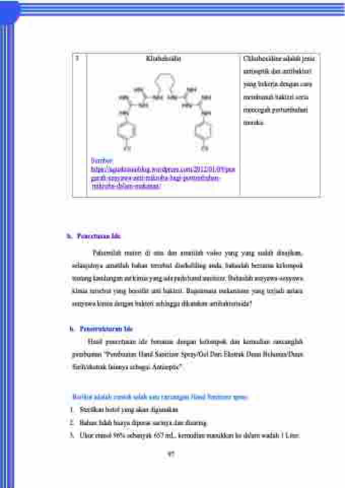 tentang kandungan zat kimia yang ada pada hand sanitizer. Bahaslah senyawa-senyawa